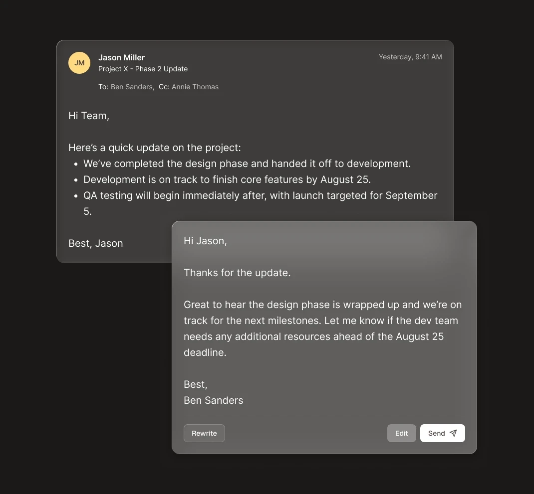 The only email AI that perfectly learns your voice, then pre-drafts every response.